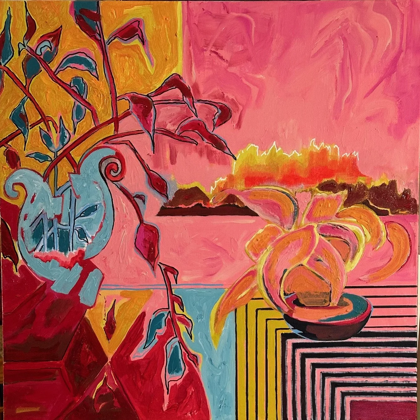 My recent interest in working in oil paint stems from a deep background in Global Art History, a desire to work with color and light, form and line, in ways different from textile media and Sculptural Basketry. The paintings are semi abstract with nature derived content from my current location immediately adjacent to the Mississippi River in rural Illinois. Still Life observation offers another opportunity for delving into strategies of geometry, spacial and value interactions, and altered perspectives on 2D surfaces.